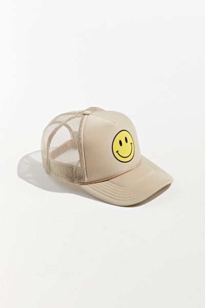 SMILEY FACE HAT The trendy womens foam trucker hat features a embroidered yellow smile face patch on front bringing a smile to everyone you pass by and. Made in LAKelly green hat with kelly green and. LIMITED QUANTITY Smiley face patch foam trucker hat.